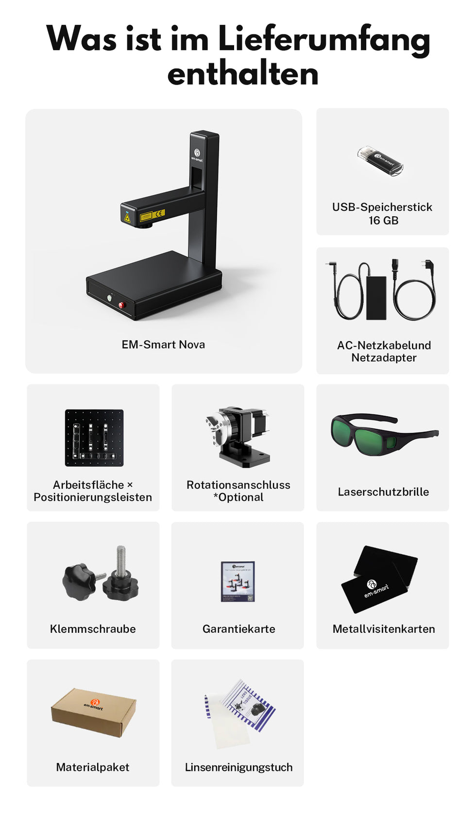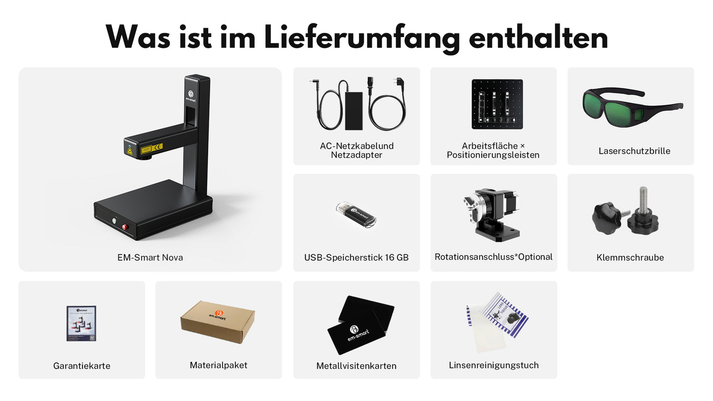 EM-Smart Nova - 20W/25W Faserlasergravierer mit Drehvorrichtung - EM-Smart Nova 1 (ohne Drehvorrichtung) / Machine mit EZCAD ist auf Lager und wird versandt, sobald es wieder verfügbar ist