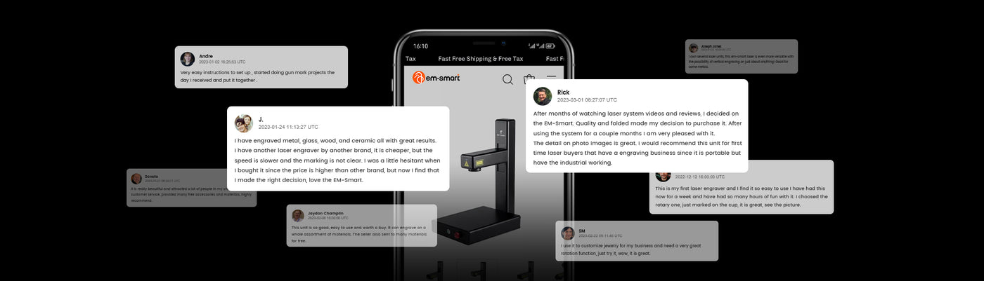 Mit einer industriellen Laserquelle mit maximal 20 W ist EM-Smart mehr als fünfmal schneller als seine Mitbewerber, sodass Sie Aufgaben, die zuvor Minuten dauerten, nun in nur wenigen Sekunden erledigen können. Verwirklichen Sie Ihre Meisterwerke im Handumdrehen.