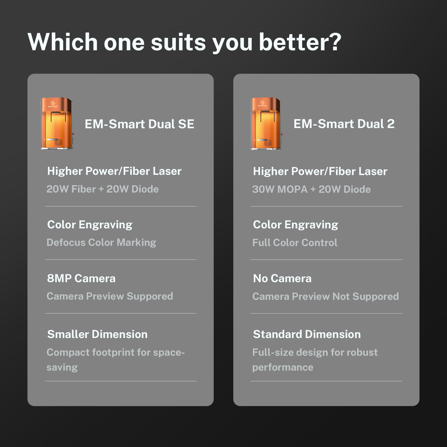 EM-Smart Dual SE Desktop-Dual-Lasergravierer - Machine Standalone ist auf Lager und wird versandt, sobald es wieder verfügbar ist