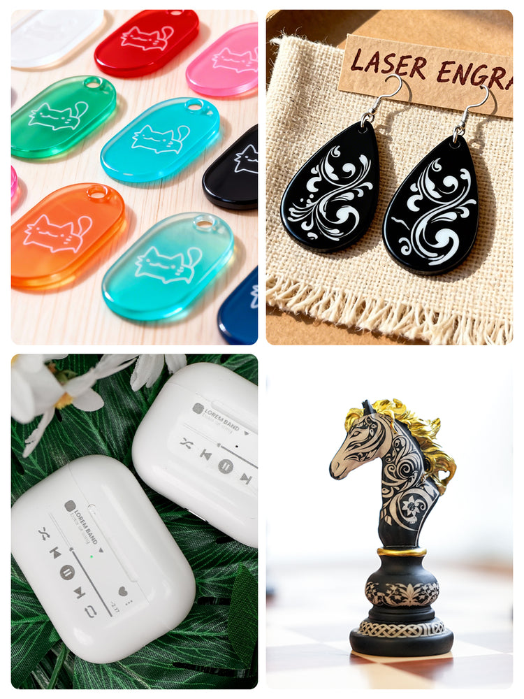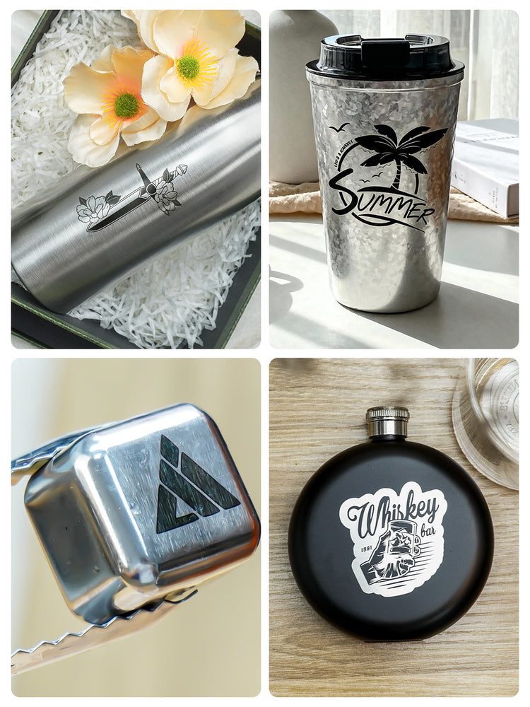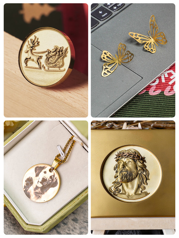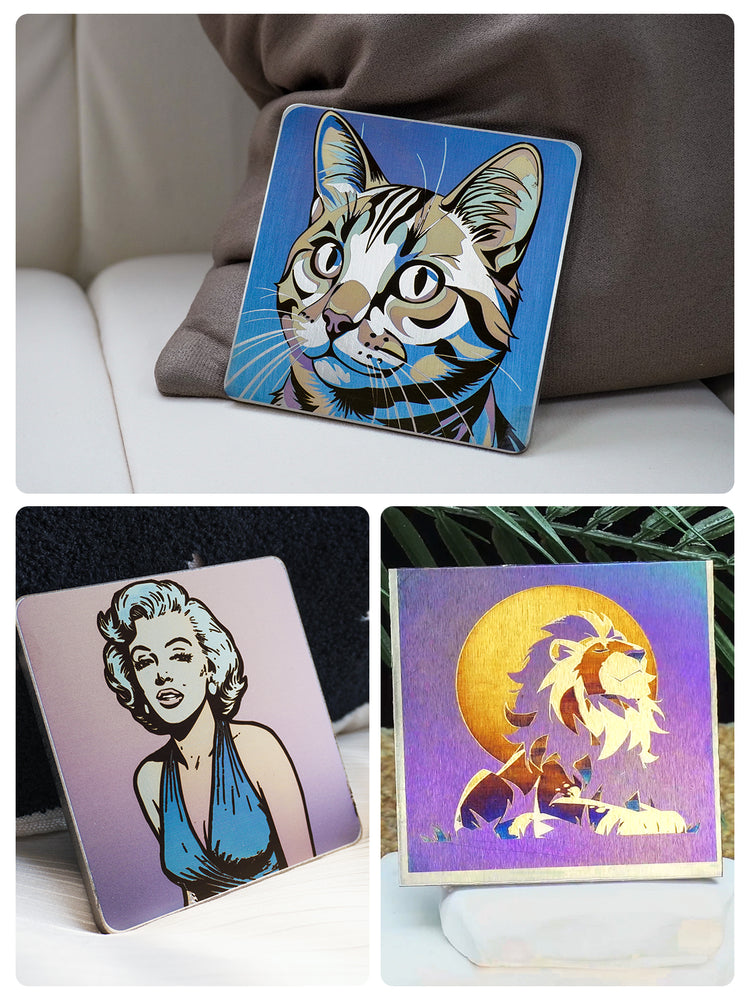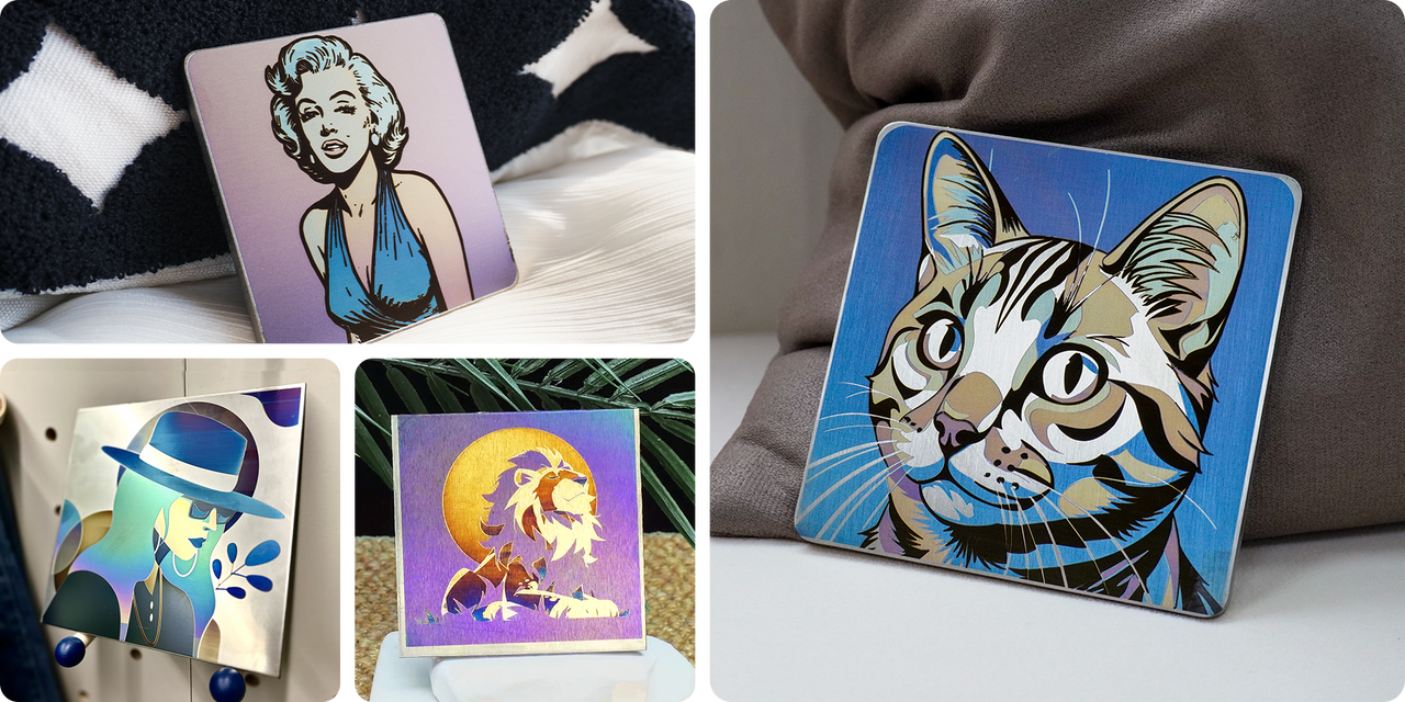 Gravieren Sie Metalle, Kunststoffe, Leder, Holz, Stein, Textilien und sogar Metalle in Vollfarbe – alles mit dem AXI. Ideal für Maker, Unternehmer und Ateliers.