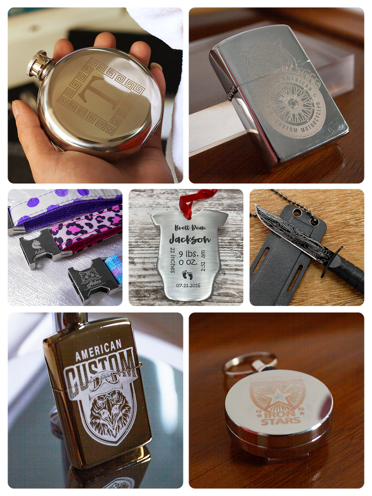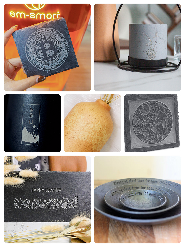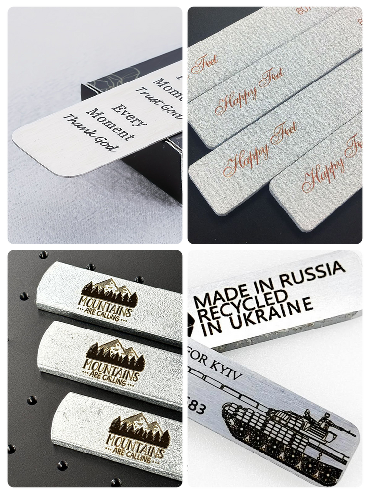 - Gravieren: Markiert tief und präzise Edelstahl, Aluminium, Titan, Messing, eloxiertes Aluminium, beschichtete Metalle und Keramik.