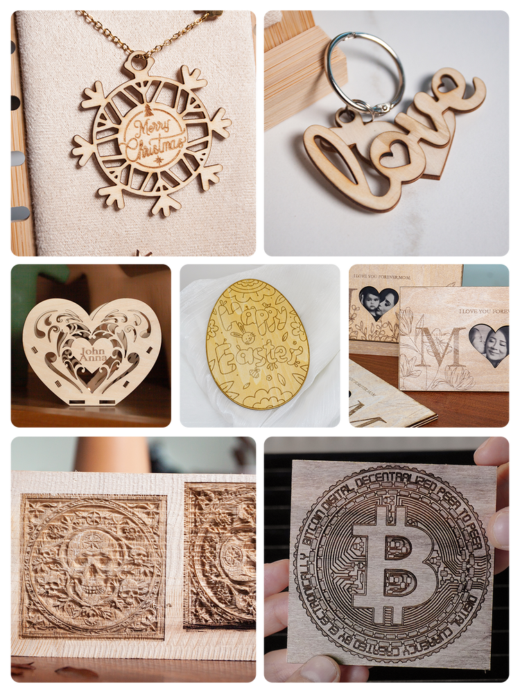 - Schneiden: Schneidet kraftvoll Materialien wie 25 mm dickes Holz und 15 mm dickes Acryl und graviert auf Oberflächen wie 1 mm dickem Metall (mit Beschichtung).