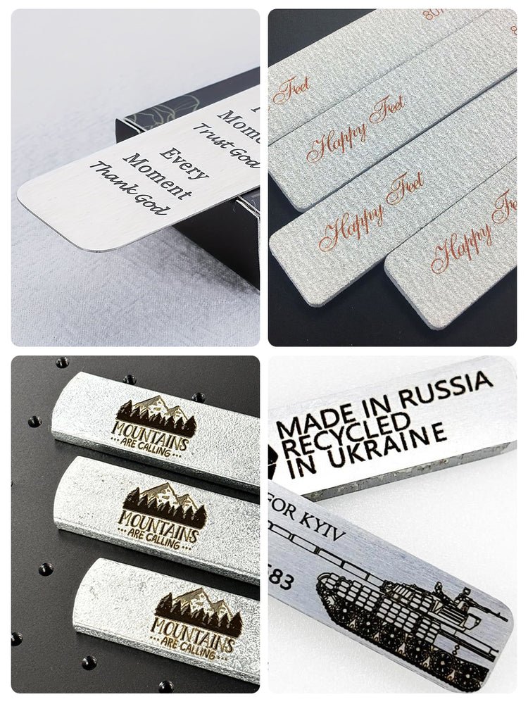 - Engraving: Deeply and precisely marks stainless steel, aluminum, titanium, brass, anodized aluminum, coated metals, ceramics.