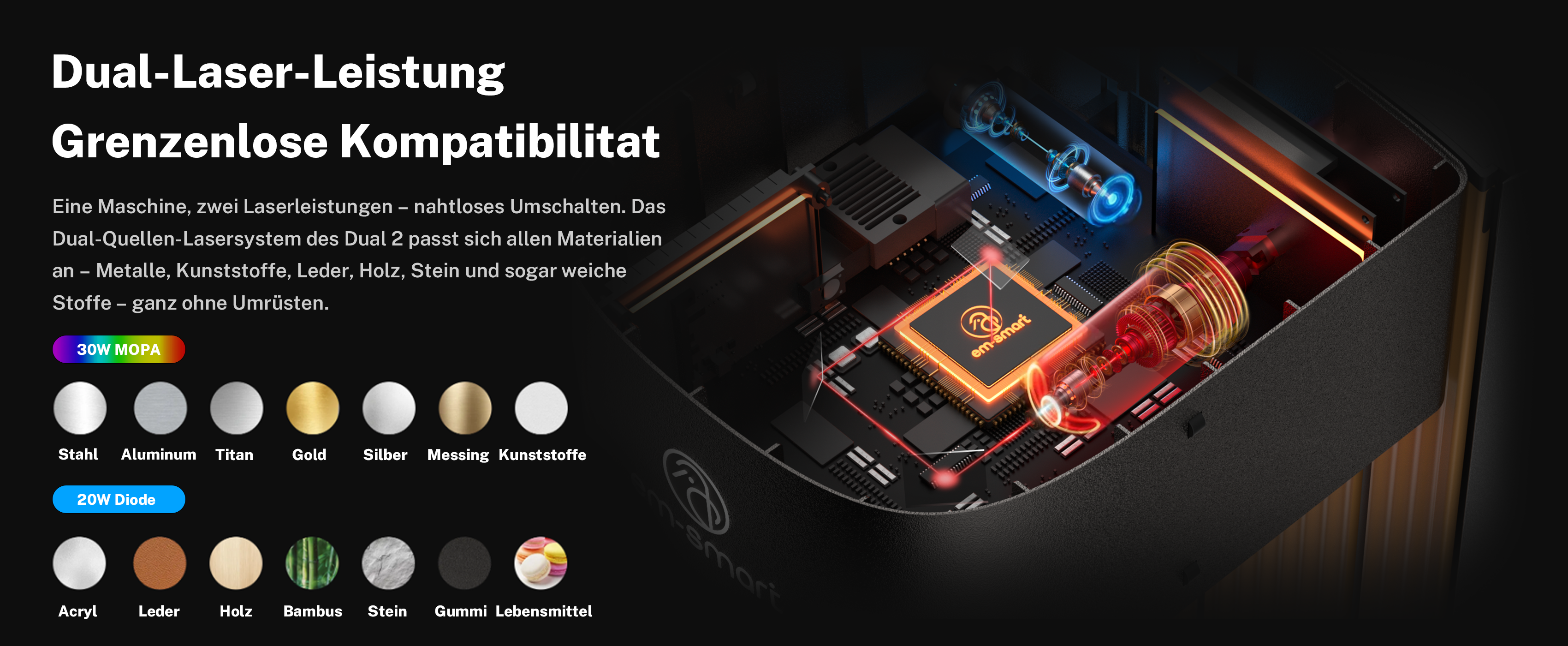 Der 30-Watt-MOPA-Prozessor der Dual 2 definiert die Schieferprägung neu und bietet Geschwindigkeit ohne Detailverlust.