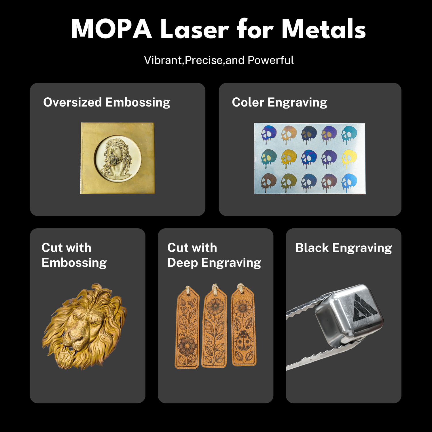 Equipped with a 20W fiber laser, it can deeply engrave metal with a 3D effect at a motion accuracy of ±0.002mm. Additionally, it can cut metal up to 0.53 mm with ease.
